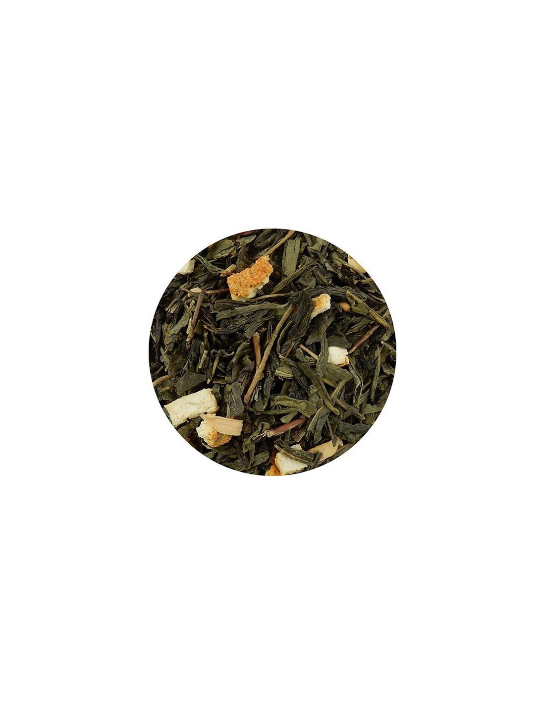 Al gusto di Ginseng-Ginger - Ingredienti: Tè verde Sencha, ginseng (min 2,2%.), bucce d'arancia, aromi, zenzero (min 1,1%.), fiori d'arancio.